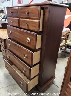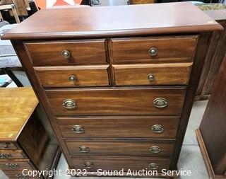 Lot #0018: Cherry Broyhill 5-Drawer Highboy Dresser
