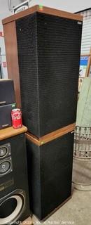 Lot Details: One works, other is non functioning. 31.5" x 16" x 16". Some cosmetic issues, one speaker input has some damage.