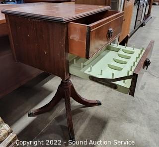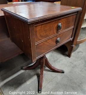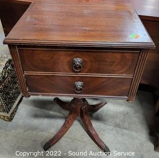 Lot #0024: Vtg. Mahogany 2-Drawer Side Table