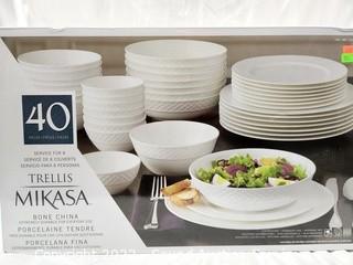 Lot #0267: 37pc Mikasa Trellis Bone China Dish Set