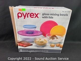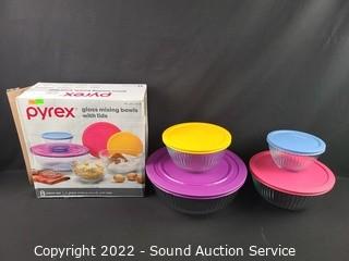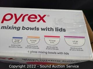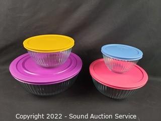 Lot #0266: 4pc Pyrex Glass Mixing Bowl Set w/4 Lids