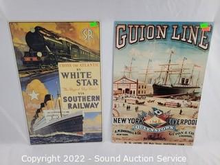 Lot #0158: 6 Tin Ocean Liner & Railroad Signs