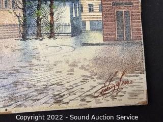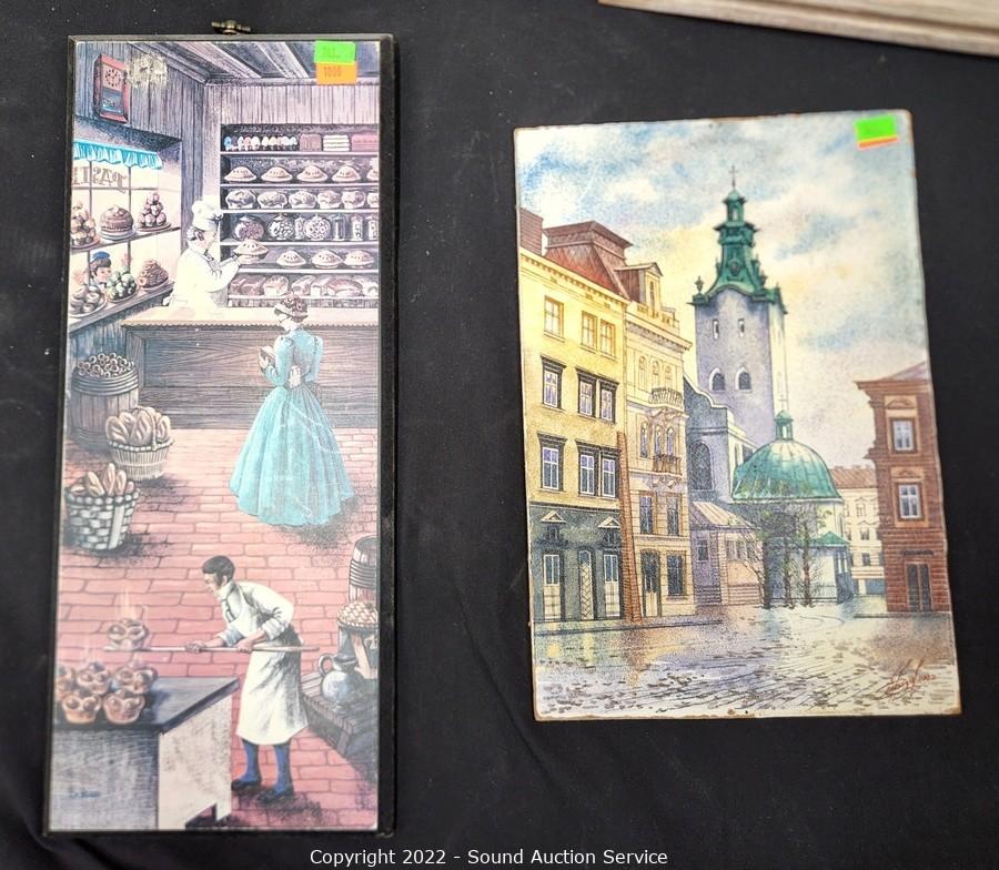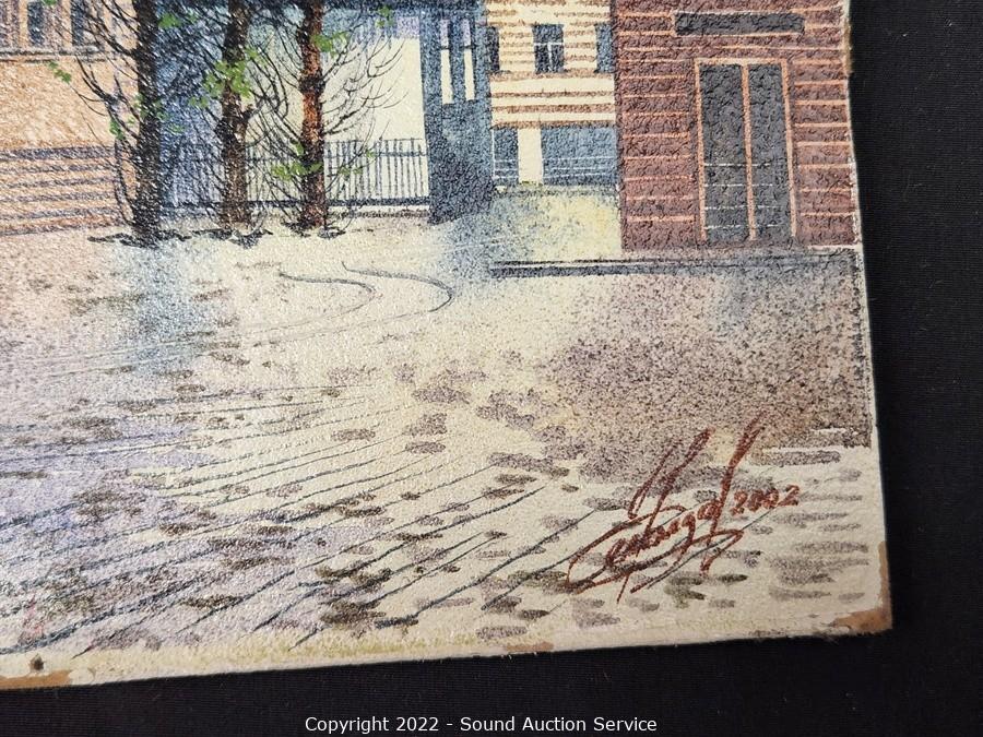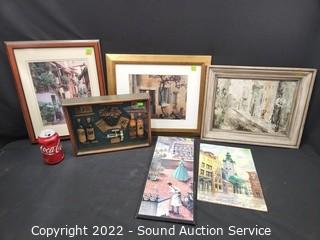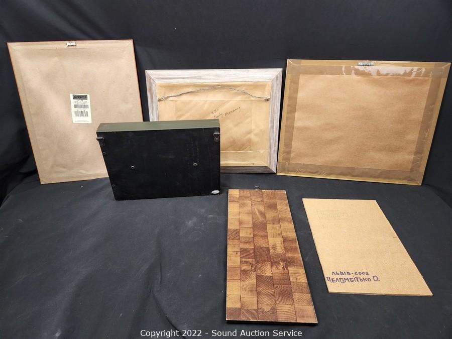 Lot Details: 2 Signed photos, original painting titled "Early Morning", other original oil painting singed and dated 2002 (refer to photos), "Wines of the World" shadowbox. 8" x 12" to 12.5" x 15.5".
