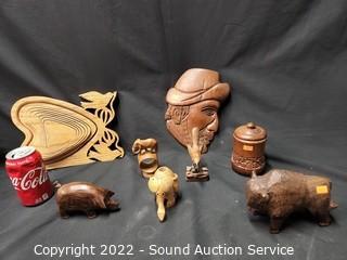 Lot Details: Basket, figures, mask, vessel, etc. 3" to 8".