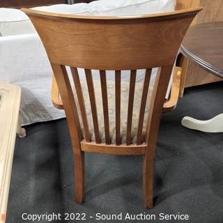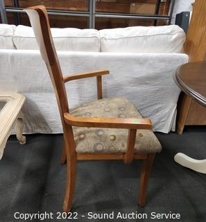 Lot Details: 2 chairs are matching, other 2 chairs are captains, do not match the finish. Table is 29" x 26" x 40" with (2) 8" drop leaves.