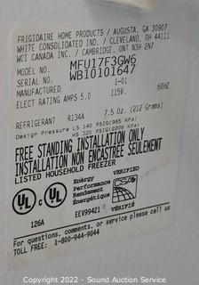 Lot Details: Could use a good cleaning. Some wear to finish. 65" H x 32" W x 27" D. Model MFU17F3GW6, Serial WB10101647. Mfg. 1-01.
