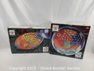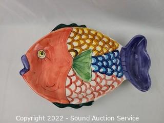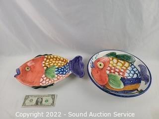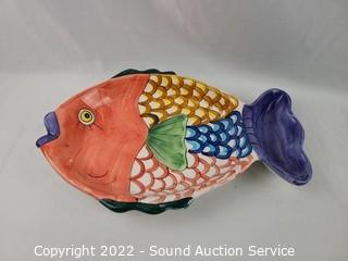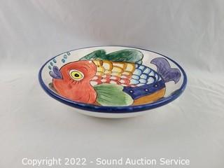 Lot #0184: Hand Painted Fish Big Bowl, Chip & Dip