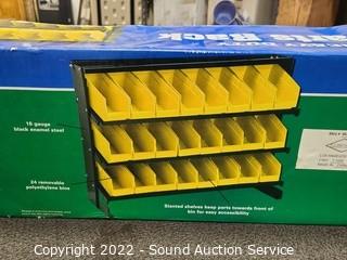 Lot Details: In original packaging. Comes with 18 bins, 11.5" L x 3-7/8" W x 4" H bins, 12" L x 31-3/8" W x 23-5/16" rack. In original packaging.