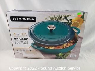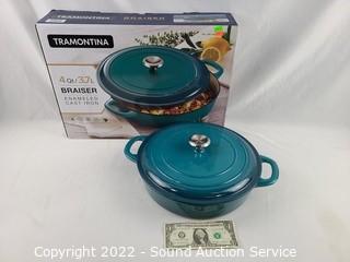 Lot #0263: Tramontina Teal Cast Iron Enamel 4qt Braiser