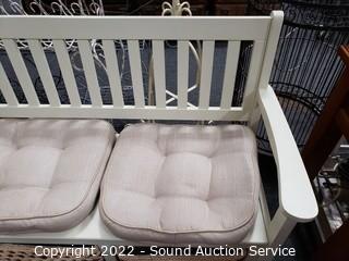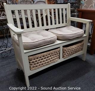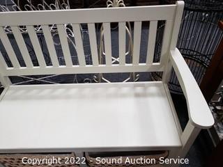 Lot #0021: Wood Ivory Finish Entryway Bench w/Understorage