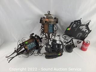 Lot #0091: Wrought Metal Candle Lanterns, Ship & Bell