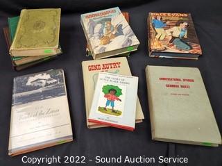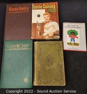 Lot Details: 1928 Juliette Low and the Girl Scouts, Polly a New Fashioned Girl (do not see a date), 1955 Annie Oakley in Danger at Diablo, 1946 Gene Autry and the Redwood Pirates, 1958 Annie Oakley in Double Trouble, 1958 Dale Evans and Danger in Crooked Canyon, 1947 Conversational Spanish and Grammar Digest, 1950 Gene Autry and the Golden Ladder Gang, 1951 On the Banks of the Zanja, The Story of Little Black Sambo (do not see a date).