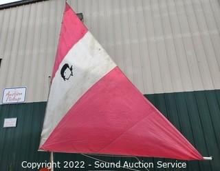 Lot Details: Approx. 11'9" x 3'8" body, 12ft x 12ft sail (has some dirty spots). Some cosmetic wear to the finish, weathering. Overall good condition.