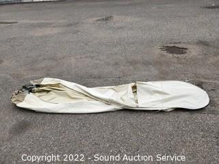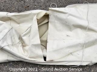 Lot Details: Approx. 10ft tall, 10.5ft diameter umbrella. Some wear from use.
