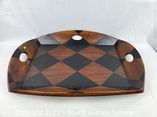 Lot #0147: Large Decorative Handled Wood Serving Tray