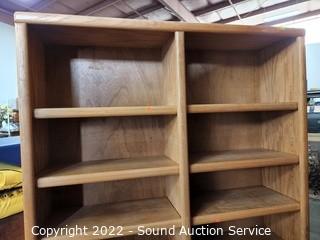 Lot #0084: Oak 10-Shelf Side by Side Adjustable Suitcase