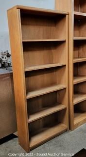 Lot Details: 72" H x 32" W x 10" D. Adjustable shelves, solid wood construction. In great condition.