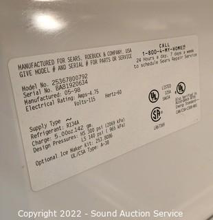 Lot Details: Could use a good cleaning. Model 25367800792, serial BA81920634. Works. 64" H x 30" W x 28" D.