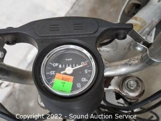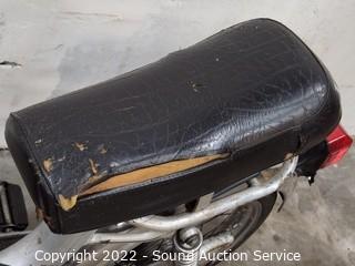 Lot Details: Some wear to finish, seat is ripped, tires are low. 5922 miles. GVWR 355lb. 40" H x 64" L overall, 33" to seat. VIN#B-50825, comes with title. As is. Consignor said bike was running 3 years ago but has been sitting since, we could not get running.