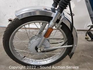 Lot Details: In great cosmetic condition, left front blinker is broken off, 395 miles. VIN#8TA030195, comes with title. 40" H x 65" L overall, 32" to seat. As is condition. Consignor said bike was running 3 years ago but has been sitting since, we could not get running.