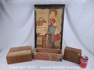361 Lots including; Vtg. Crates, Reclining Sofa, Rolltop Desk, Power Recliner, Folding Tables, Step Ladders, Chainsaw Carving Sculptures, Mechanical Lift-top Coffee Table, Vintage Tiger Oak 6-Drawer Vanity Dresser, Lawyer's Bookcases, Best Chairs Swivel Rocking Fabric Recliners, Wood Chests, Various Original, Print & Lithograph Artwork, 10x10ft Pop-Up Shade, Men's & Women's Jackets, Watches, Vtg. Records, Vtg. Pottery Cookie Jars, Myott Melody Blue Ironstone Fine China, Yamaha ATS-1010 Digital Soundbar w/Remote, Cutco Knives, Pocket Knives, Vtg. Cameras, Collectible US & Foreign Coins (some silver), 13 & 48 Star American Flags, Tools & Hardware, Samsung 43" 4K Ultra HD Smart LED TV w/Remote, HP Touchscreen All-in-One PC, Nice Sealy Queen Bed w/Steel Frame, Gold Jewelry, Sports Cards, Reading Glasses, Various Household & So Much More!!!
