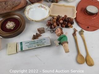361 Lots including; Vtg. Crates, Reclining Sofa, Rolltop Desk, Power Recliner, Folding Tables, Step Ladders, Chainsaw Carving Sculptures, Mechanical Lift-top Coffee Table, Vintage Tiger Oak 6-Drawer Vanity Dresser, Lawyer's Bookcases, Best Chairs Swivel Rocking Fabric Recliners, Wood Chests, Various Original, Print & Lithograph Artwork, 10x10ft Pop-Up Shade, Men's & Women's Jackets, Watches, Vtg. Records, Vtg. Pottery Cookie Jars, Myott Melody Blue Ironstone Fine China, Yamaha ATS-1010 Digital Soundbar w/Remote, Cutco Knives, Pocket Knives, Vtg. Cameras, Collectible US & Foreign Coins (some silver), 13 & 48 Star American Flags, Tools & Hardware, Samsung 43" 4K Ultra HD Smart LED TV w/Remote, HP Touchscreen All-in-One PC, Nice Sealy Queen Bed w/Steel Frame, Gold Jewelry, Sports Cards, Reading Glasses, Various Household & So Much More!!!