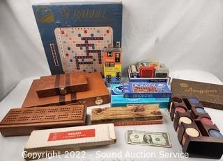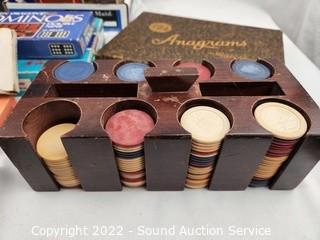 361 Lots including; Vtg. Crates, Reclining Sofa, Rolltop Desk, Power Recliner, Folding Tables, Step Ladders, Chainsaw Carving Sculptures, Mechanical Lift-top Coffee Table, Vintage Tiger Oak 6-Drawer Vanity Dresser, Lawyer's Bookcases, Best Chairs Swivel Rocking Fabric Recliners, Wood Chests, Various Original, Print & Lithograph Artwork, 10x10ft Pop-Up Shade, Men's & Women's Jackets, Watches, Vtg. Records, Vtg. Pottery Cookie Jars, Myott Melody Blue Ironstone Fine China, Yamaha ATS-1010 Digital Soundbar w/Remote, Cutco Knives, Pocket Knives, Vtg. Cameras, Collectible US & Foreign Coins (some silver), 13 & 48 Star American Flags, Tools & Hardware, Samsung 43" 4K Ultra HD Smart LED TV w/Remote, HP Touchscreen All-in-One PC, Nice Sealy Queen Bed w/Steel Frame, Gold Jewelry, Sports Cards, Reading Glasses, Various Household & So Much More!!!