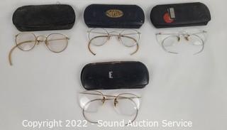Lot #0145: 4 Pairs Vtg. 1/10 12K GF Spectacles, Glasses