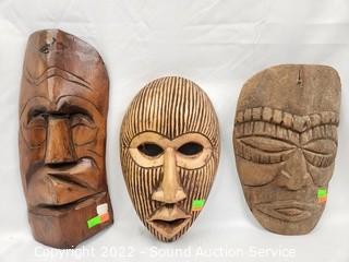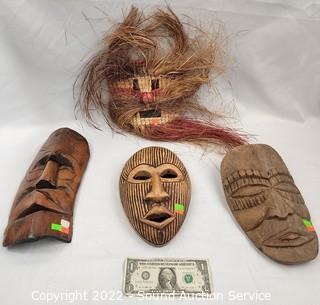 Lot #0352: 4 Primitive Carved Wood Tribal Masks