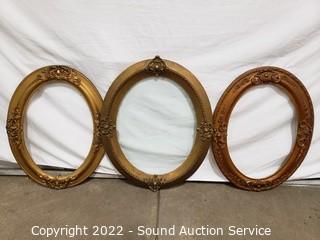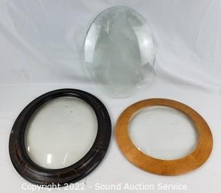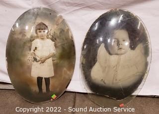 Lot Details: With 2 vintage portraits, 10.5" Dia, 14" x 10.5" Dia, 20" x 13.5" bubble glass (some chips). Frames fit 10.5" Dia, 14" x 10.75", 19.5" x 13.5", & 20" x 16". Various wear to finish.