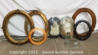 Lot #0330: 5 Vtg. Oval Frames & 2 Bubble Glass