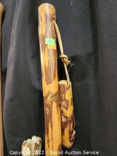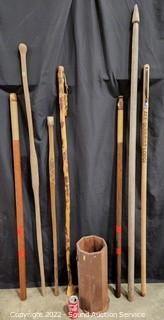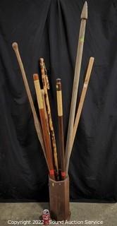 Lot #0040: 7 Wood Walking Sticks w/Wood Umbrella Stand