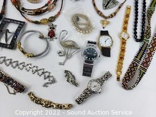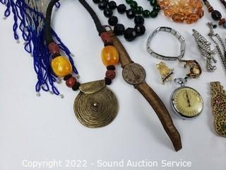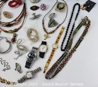 Lot Details: Necklaces, earrings, rings, watches, pins & more. Refer to photos for more information.