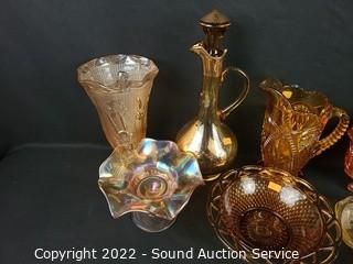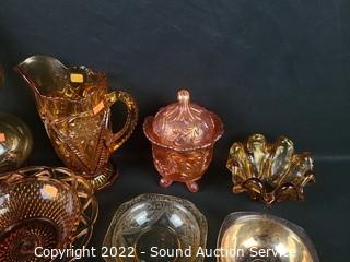 Lot Details: Decanter, vase, covered dish, dishes, pitcher. Don't see any issues.