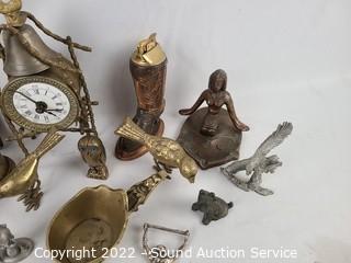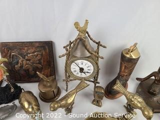 Lot Details: Brass, pewter, copper. Clock not functioning. Refer to photos for lot contents.