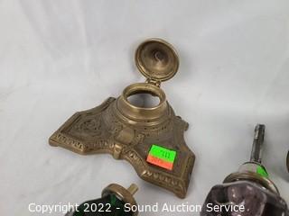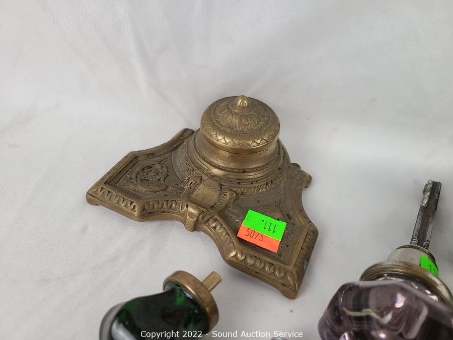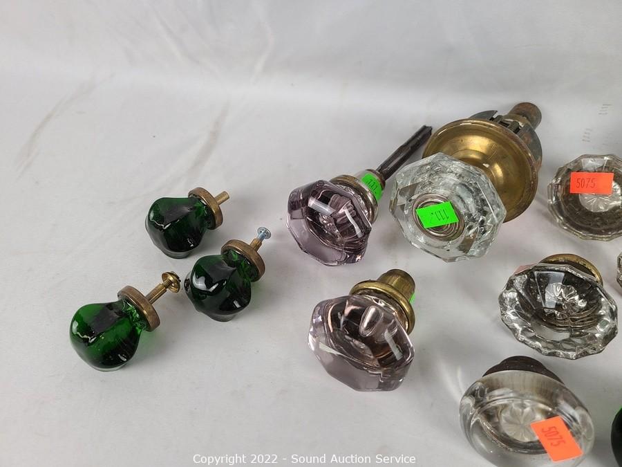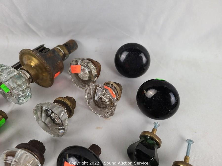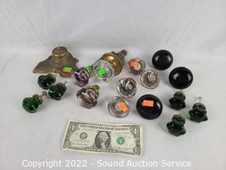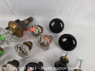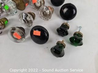 Lot #0111: Assorted Vtg. Glass & Porcelain Knobs & Inkwell