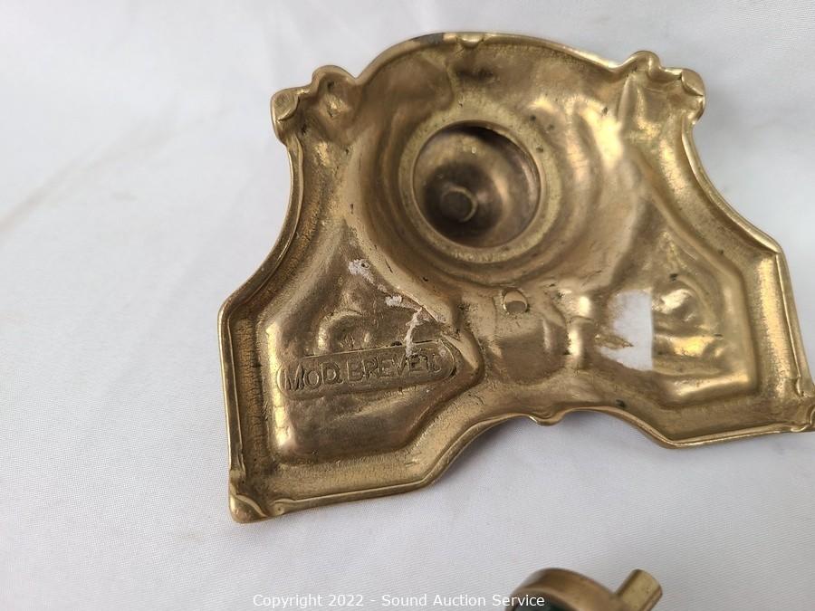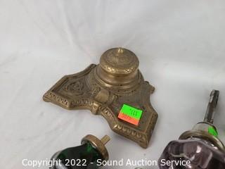 Lot Details: Inkwell is marked Med.Brevet. Knobs approx. 2" to 2.25" dia. A few with a purple tint showing their age.