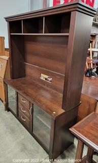 Lot Details: Oak veneer, particle board construction, cord holes in the back. In great condition.