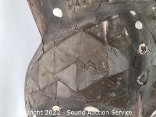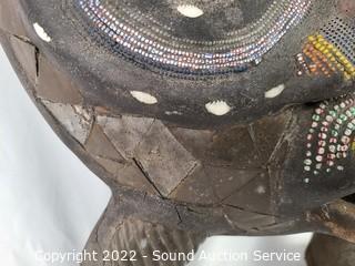Lot Details: Adorned with various metal plates, seashells, stones. A few chips on the feet, missing some metal plates. 26" H x 12" W>