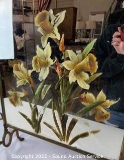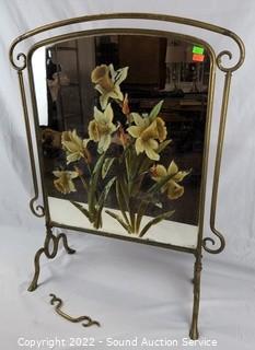 Lot #0072: Vtg. Mirrored Floral Painted Fireplace Screen