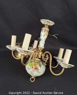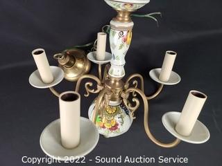 Lot #0263: Vtg. Porcelain Hand Painted 5-Light Chandelier
