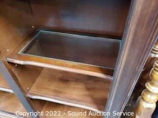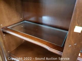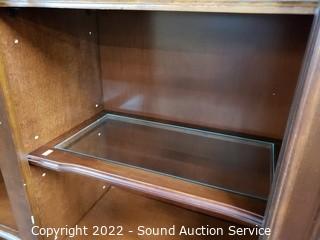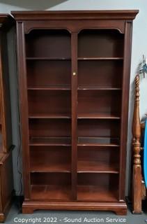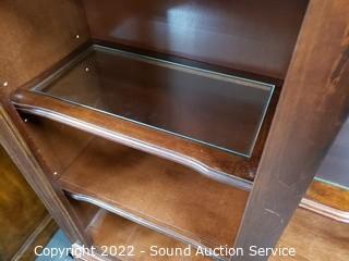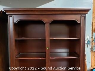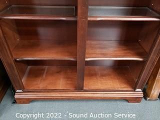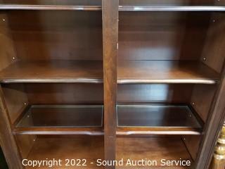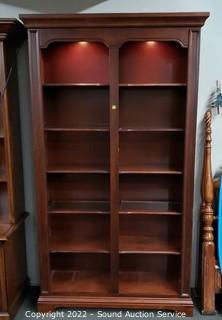Lot #0036: Lighted Dark Finish Side by Side Bookcase