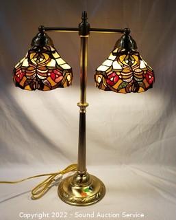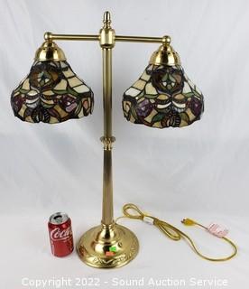 Lot #0269: Nice Brass Finish Dual Stained Glass Shade Lamp