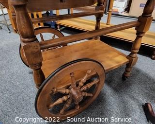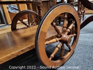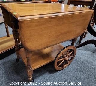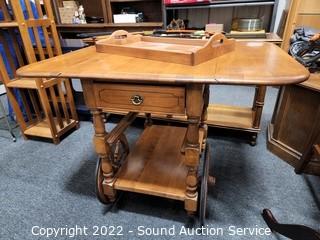 Lot #0024: Nice Maple Drop Leaf Rolling Tea Cart w/Tray