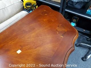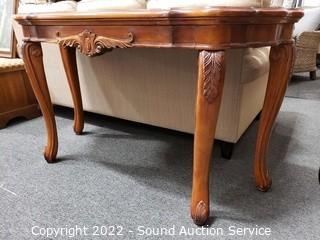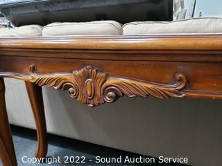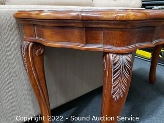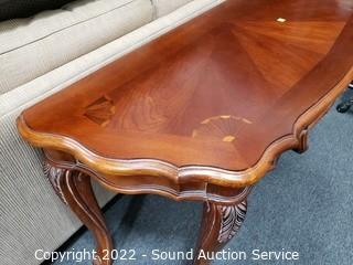 Lot #0005: Ornate Cherry Tessellated Top Hall/Sofa Table