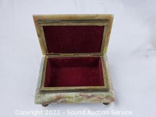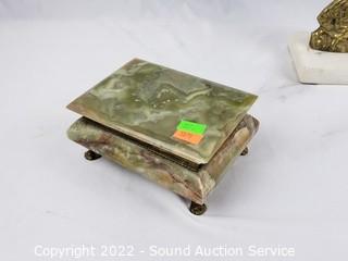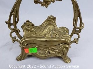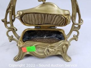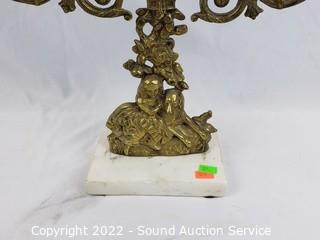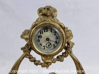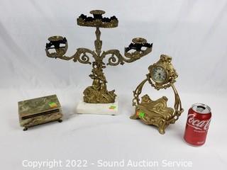 Lot #0327: Ornate Golden Candelabra, Clock & Onyx Trinket Box