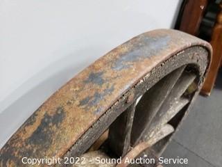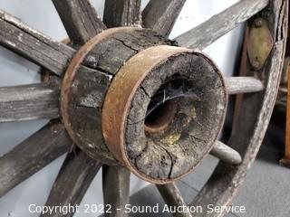 Lot #0056: Rustic Weathered Farm Wagon Wheel