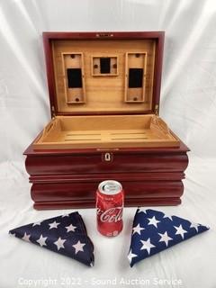 Lot #0206: Thompson Cigar Humidor & 2 Small US Flags