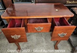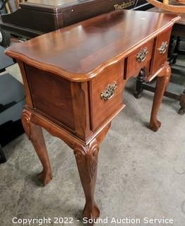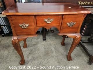 Lot #0004: Cherry Finish 3 Drawer Desk/Hall Claw Foot Table
