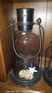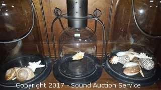 Lot #0052: 4 Large Glass Dome Hanging Lanterns w/Seashells